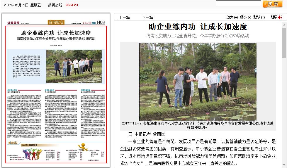 近日,證券導(dǎo)報(bào)以四個(gè)版面整版報(bào)道海南股權(quán)交易中心,關(guān)注股交中心三年以來的發(fā)展。其中,通過一個(gè)版面的篇幅,提煉總結(jié)了股交中心“助力中小微企業(yè)發(fā)展工程”啟動(dòng)一年以來,在服務(wù)企業(yè)、推動(dòng)企業(yè)發(fā)展等方面走過的歷...
