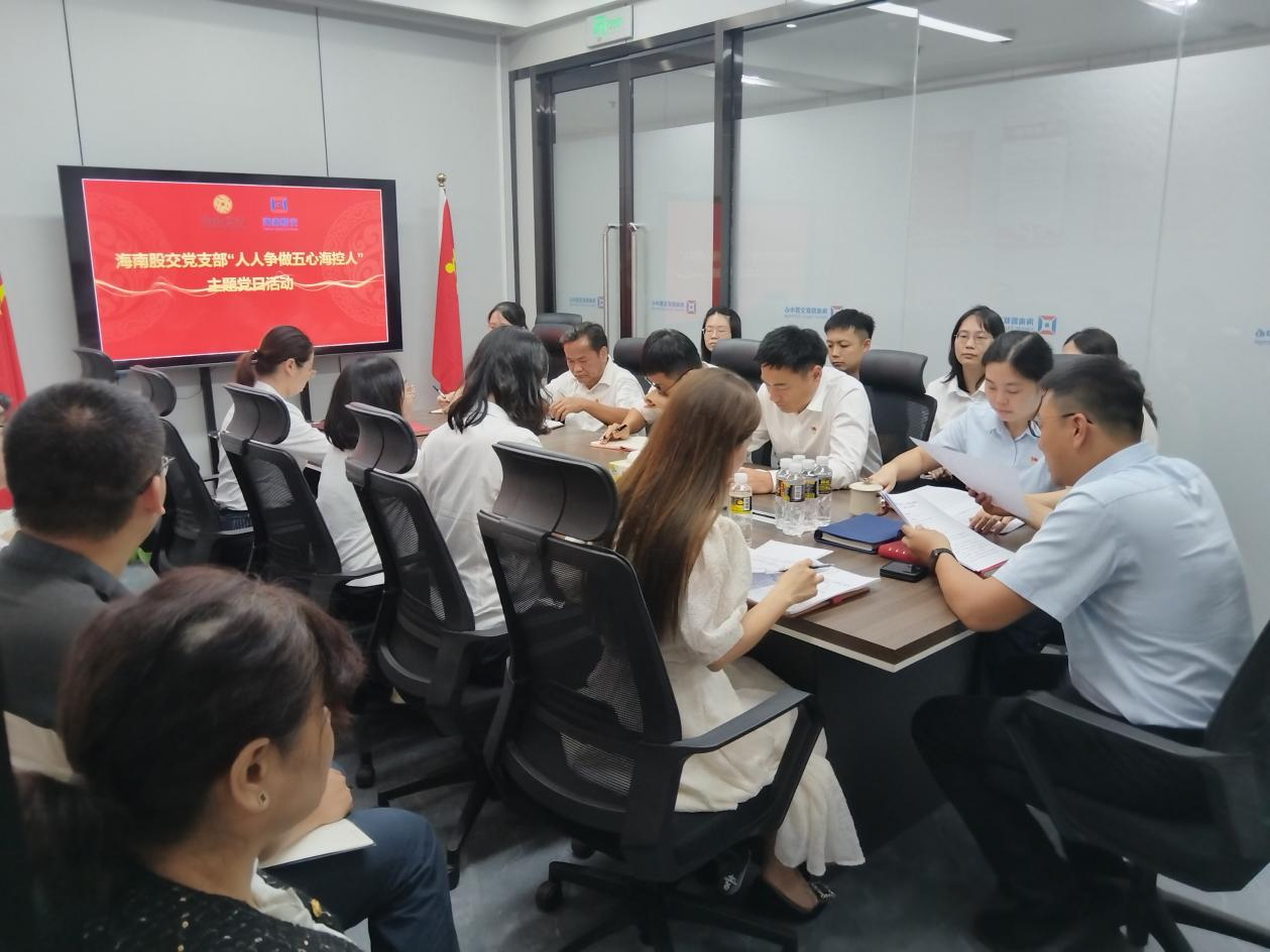 為深入貫徹落實(shí)海南控股“人人爭(zhēng)做五心??厝恕惫ぷ饕?,強(qiáng)化黨員干部責(zé)任擔(dān)當(dāng)意識(shí),提升團(tuán)隊(duì)凝聚力與戰(zhàn)斗力,近日,海南股交黨支部組織開展“人人爭(zhēng)做五心海控人”主題黨日活動(dòng),海南股交黨支部書記、董事長(zhǎng)朱磊主持會(huì)議并作主題教育,全體員工參加會(huì)議。
